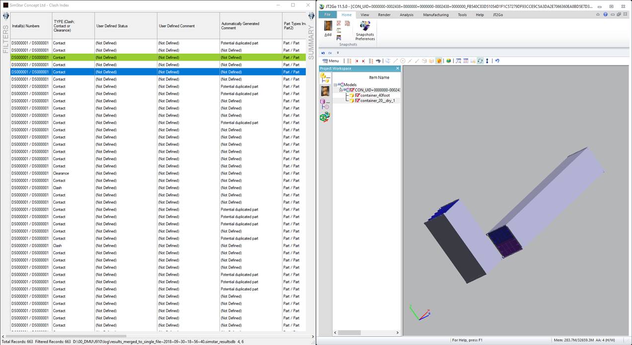 For example an entire vehicle can be checked on a nightly basis with reports ready for the designers (and other stakeholders) the following morning, effectively reporting on "live" data in comparison to potentially week's old data using traditional methods. The indexed reports can be searched and with this facility in place the number of people who can effectively work through the potential clash issues is broadened to include the entire design team or any other stakeholder. With a unique identifier for each clash, contact or clearance situation tracking and analysing the results from day to day (Clash Run to Clash Run) allows the tracking and labelling of situations where clashes should occur to be filtered from the results if desired allowing the real problem conditions to be rapidly found and remedial action taken.